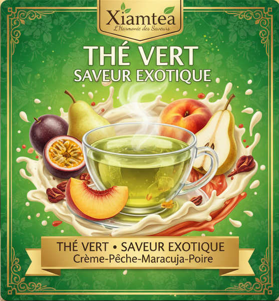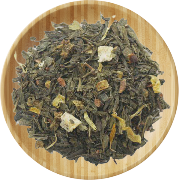 Ingrédients : Thé vert Chine Sencha, Honeybush, arôme naturel, Poire, fruit de la passion, pêche, souci.
