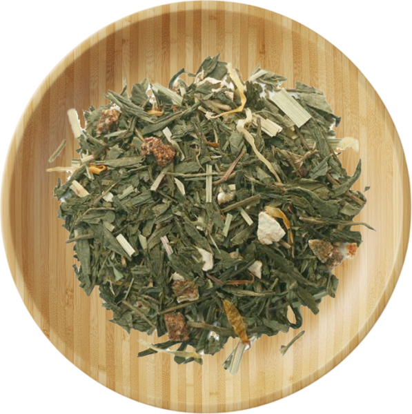 Ingrédients: Thé vert China Sencha, écorces de citron, figue (figue, farine de riz), citronnelle, arôme naturel, souci. Mélange premium élaboré avec des ingrédients issus de l'agriculture durable et des arômes naturels.